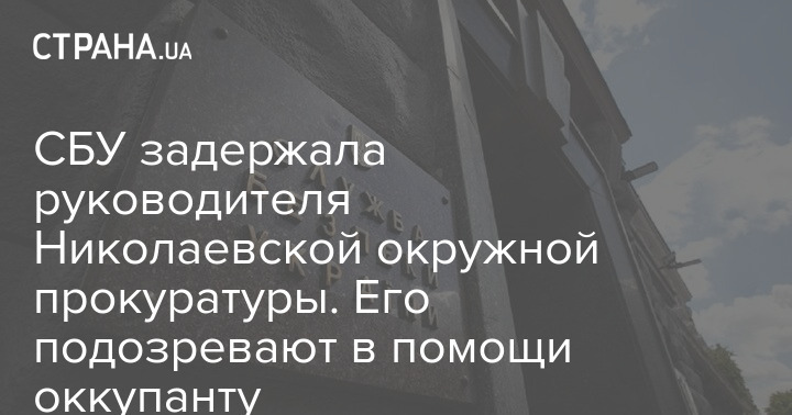 СБУ задержала руководителя Николаевской окружной прокуратуры. Его подозревают в помощи оккупанту