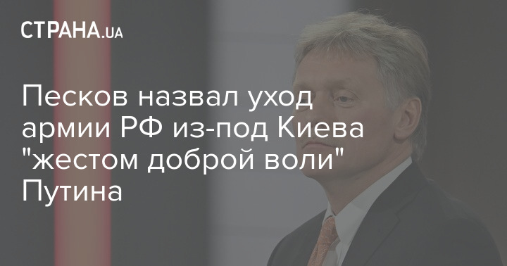 Пресс-секретарь президента РФ Дмитрий Песков заявил, что отвод российских военных с территории Киевской области выполнен по приказу лично Владимира Путина, чтобы упростить переговоры между Россией и Украиной.