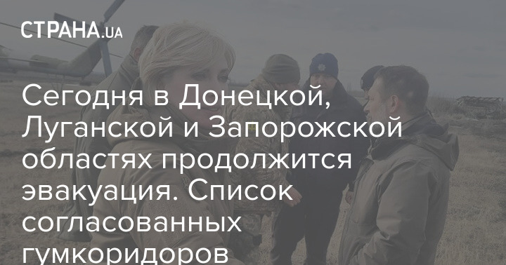 На сегодня согласованы маршруты 10 гуманитарных коридоров в Донецкой, Луганской и Запорожской областях. Людей призывают выезжать из опасных мест на собственном транспорте, автобусах и поездах.
