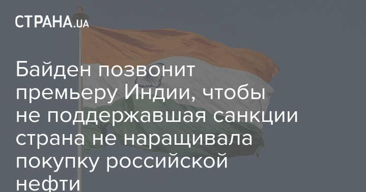 Байден позвонит премьеру Индии, чтобы не поддержавшая санкции страна не наращивала покупку российской нефти
