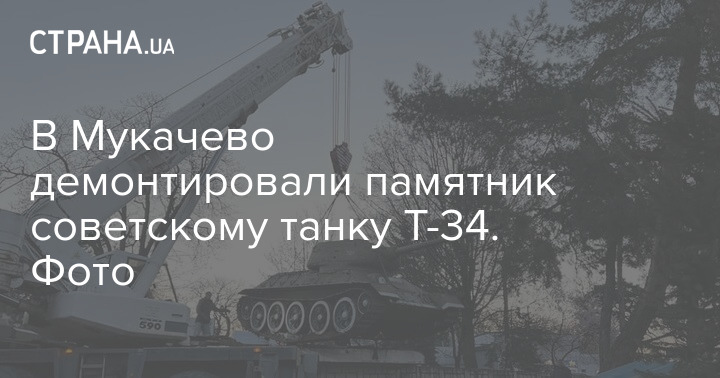В Мукачево демонтировали памятник советскому танку Т-34. Фото