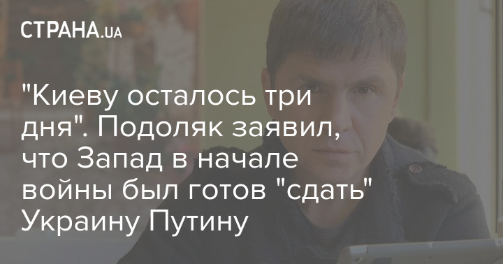 "Киеву осталось три дня". Подоляк заявил, что Запад в начале войны был готов "сдать" Украину Путину