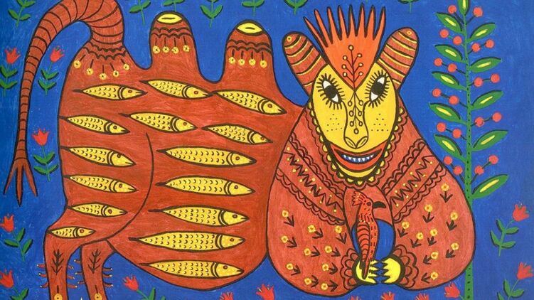 Напомним, что Мария Примаченко - украинская народная художница и представительница "народного примитива", Она писала фантасмагоричных животных в стиле наивного искусства. Мотивы ее картины были схожи с народными мотивами писанок: яркие с простыми линиями и повторяющимися элементами. Стиль Примаченко успел стать культовым и часто копируется или переосмысляется в современной культуре.