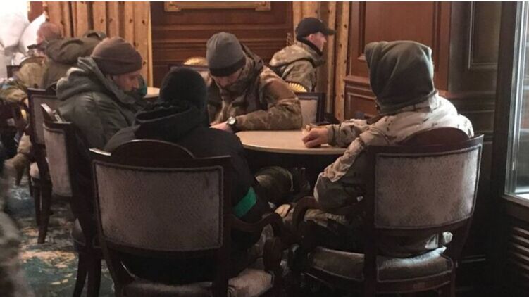 Люди в камуфляже ворвались в отель. Фото: Суспільне