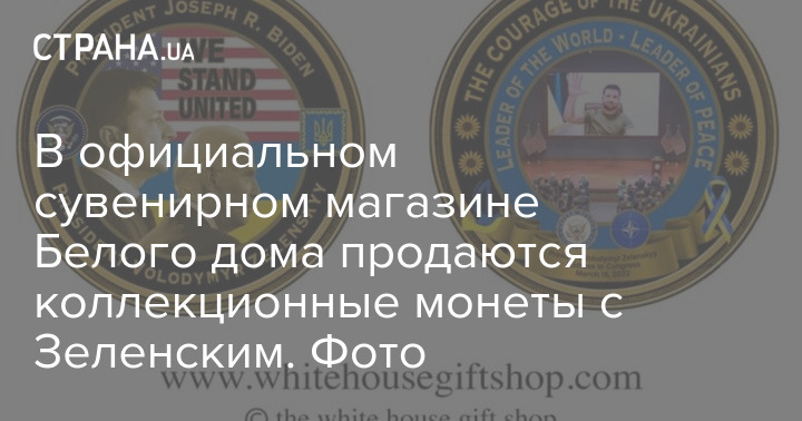 На сайте официального подарочного магазина Белого дома продаются коллекционные монеты с лицом Владимира Зеленского.