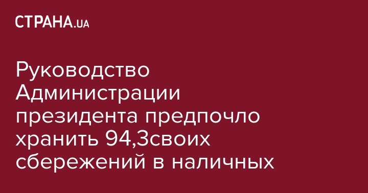Руководящее звено чиновников Администрации Президента, в частности - глава, первый заместитель и 4 заместителя, а также их семьи предпочти держать 94,3% своих денежных активов в наличных. Об этом сообщают Украинские новости со ссылкой на собственные расчеты на основании их электронных деклараций государственных служащих за 2015 год.