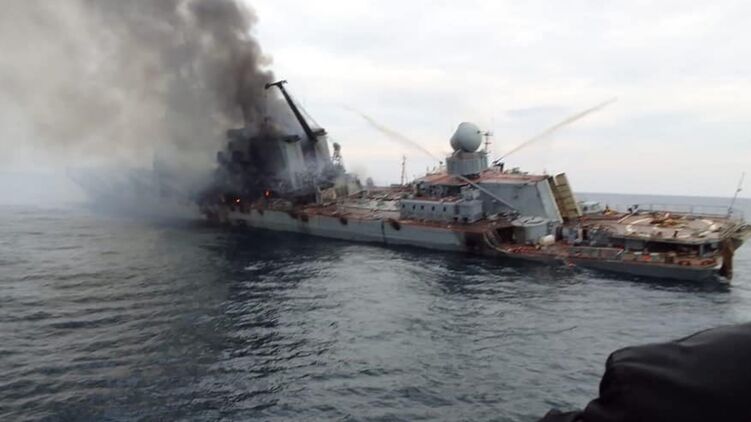 На опубликованных фотографиях видно, что крейсер склонился на левую сторону и тонет.