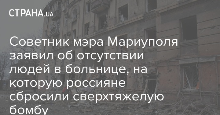 Советник мэра Мариуполя заявил об отсутствии людей в больнице, на которую россияне сбросили сверхтяжелую бомбу