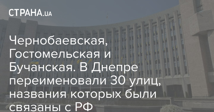 В Днепре на сессии горсовета переименовали ряд топонимов, связанных с РФ. В частности, улица Беломорская стала Чернобаевской, улица Абхазская - Ирпенской, а переулок Бурятский - Бучанским.