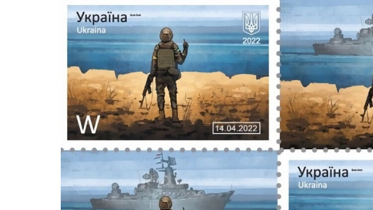 Напомним, 12 апреля "Укрпочта" выпустила марки с фразой "Русский военный корабль иди ...!". На иллюстрации изображен морской пехотинец, показывающий недружественный жест военному кораблю, а внизу фраза, ставшая крылатой после употребления украинскими военными с острова Змеиный.