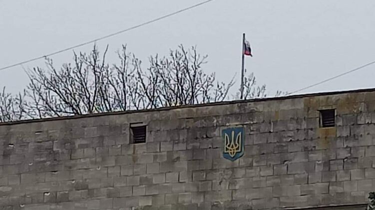 Российские оккупанты подняли свой флаг над мэрией города Приморска Запорожской области.