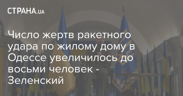 Число жертв ракетного удара по жилому дому в Одессе увеличилось до восьми человек - Зеленский