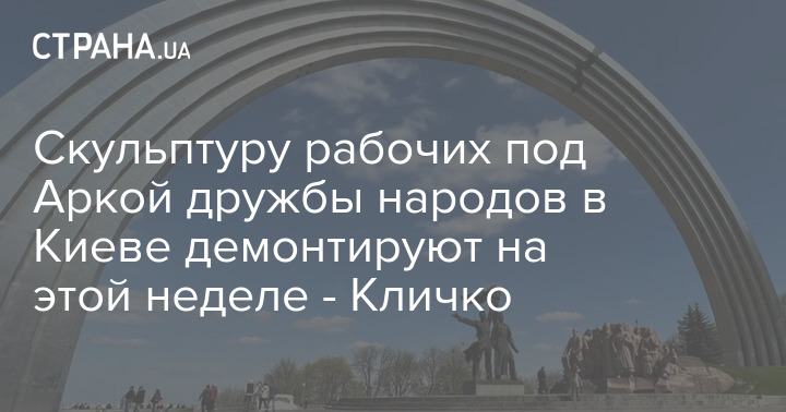 В Киеве на этой неделе на Арке дружбы народов демонтируют бронзовую скульптуру двух рабочих, установленную в 1982 году в честь " ознаменования воссоединения Украины с Россией". Об этом сообщил столичный мэр Виталий Кличко.