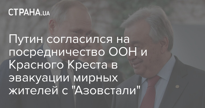 Генеральный секретарь ООН Анутониу Гуттериш предложил президенту России Владимиру Путину посредничество Красного креста для эвакуации людей из Мариуполя и, в частности, из "Азовстали". Глава Кремля ответил согласием.
