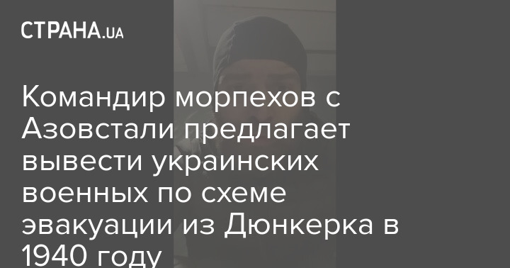 Волына призвал провести процедуру extraction - то есть вывести оставшиеся украинские подразделения из Мариуполя в третью страну. В пример он привёл эвакуацию из Дюнкерка англо-французских войск в 1940 году.