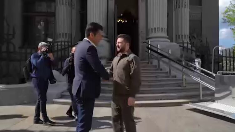 На опубликованном видео можно рассмотреть, как Владимир Зеленский встречает болгарского премьера в своей резиденции - в Киеве на Банковой. Политики поприветствовали друг друга рукопожатием и направились на переговоры.