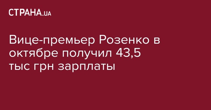 Вице-премьер Розенко в октябре получил 43,5 тыс грн зарплаты