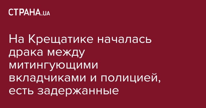 На Крещатике началась драка между митингующими вкладчиками и полицией, есть задержанные