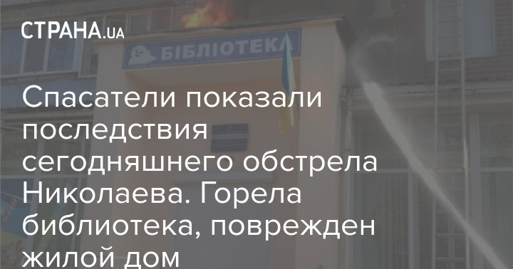 Спасатели показали последствия сегодняшнего обстрела Николаева. Горела библиотека, поврежден жилой дом