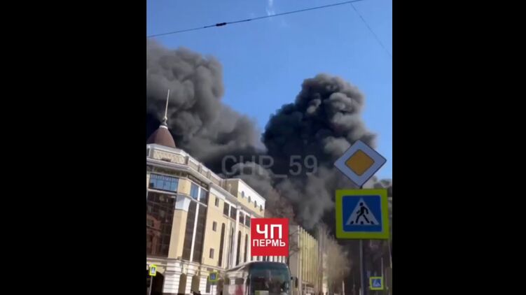 Клубы черного дыма заволокли Пермь. Скриншот