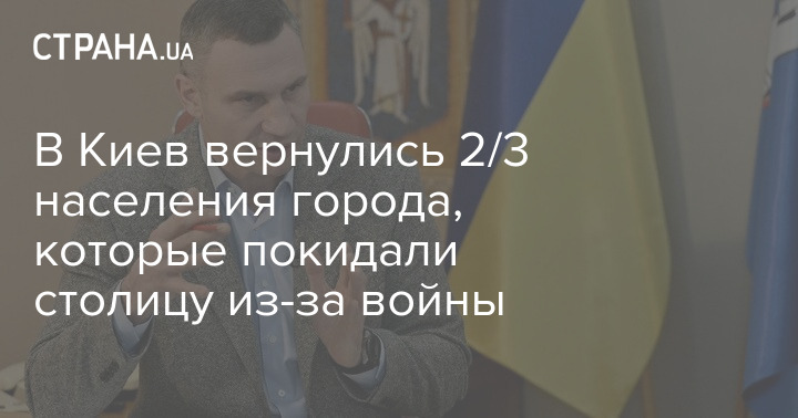 Мэр Киева Виталий Кличко заявил, что из 3,5 млн жителей столицу в нее вернулись уже две трети населения, которые покидали столицу из-за военных действий.