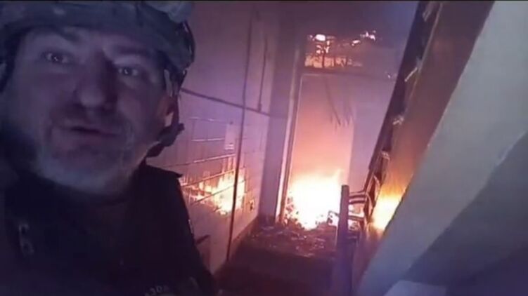 "Вот в каких условиях приходится выживать. Там в подвале мы и живем. А первый и второй этажи горят. Слышите, как прилетает, взрывается?" – говорит снимающий видеоролик военный.
