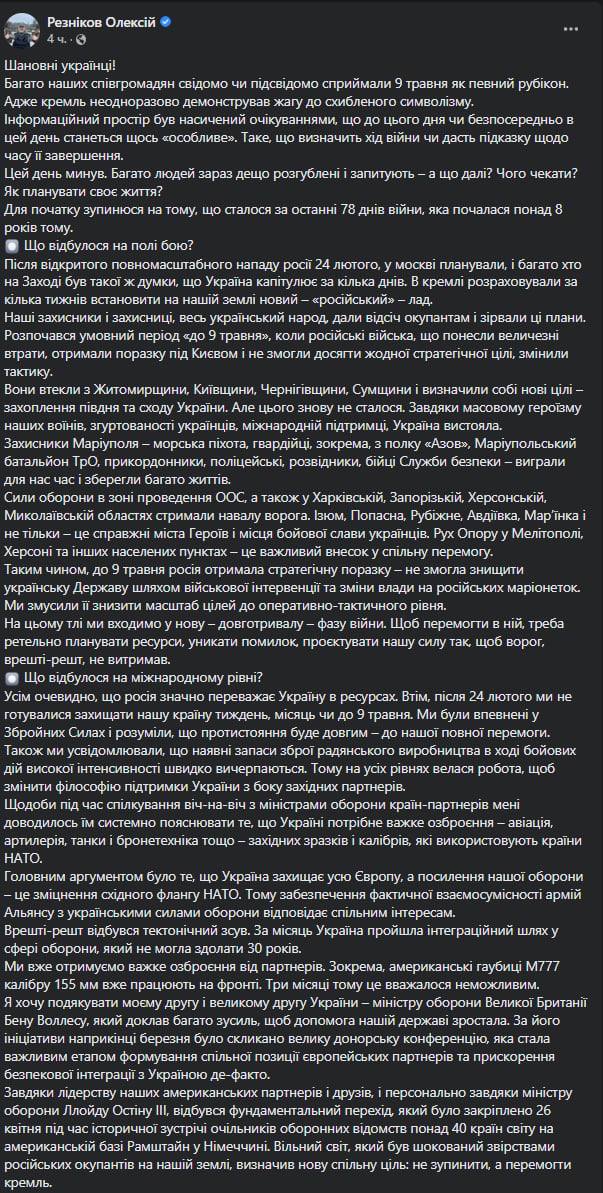 1. "Сегодня можем отчитаться о 200-м сбитом российском самолете. Столько авиации Россия не теряла ни в одной войне за десятки лет... Россия потеряла больше 3 тысяч танков, бронированных машин, большое количество обычных машин, вертолеты, беспилотники и все свои перспективы как государства".