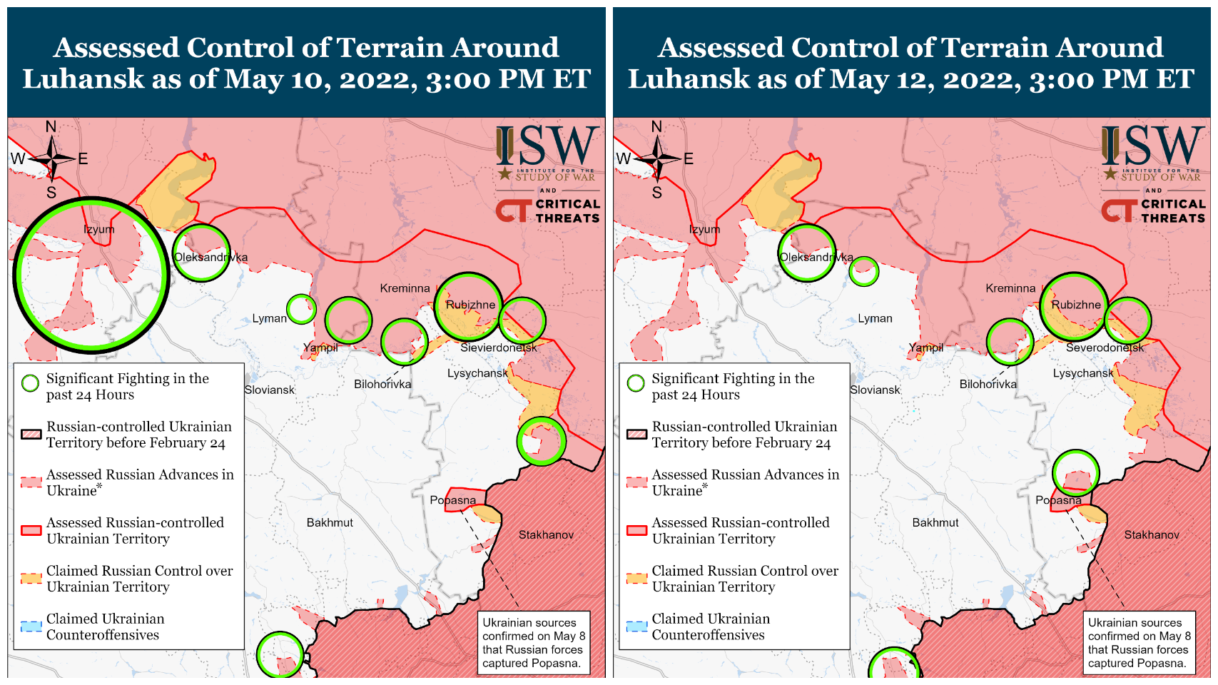 О том, что Рубежное скорее всего захвачено, указывает в своем отчете за 12 мая и цитированный выше "Институт изучения войны".