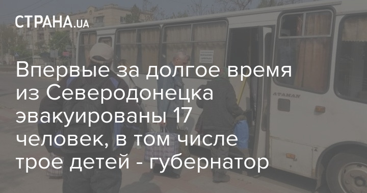 Военный губернатор Луганской области Сергей Гайдай сообщил, что впервые за долгий период из Северодонецка эвакуированы 17 человек, среди них трое детей.