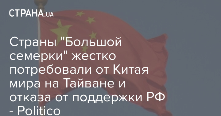 Страны "Большой семерки" усиливают нажим на Китай по поводу Тайваня и России. Об этом сообщает издание Politico.
