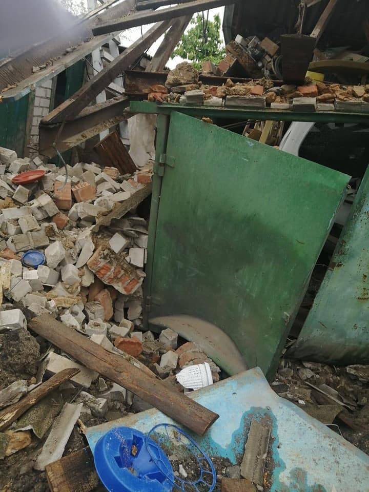 В результате обстрела в домах разрушены крыши, иссечены стены, выбиты окна. Некоторые помещения от прямых ракетных попаданий полностью разрушены. Повреждены придомовые территории и гаражи мирного населения.