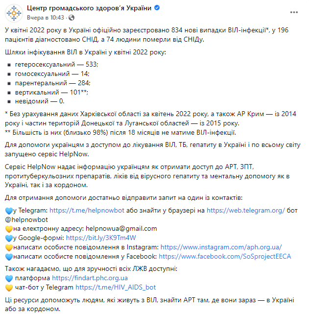 ЦОЗ сообщает, что для помощи украинцам с доступом к лечению ВИЧ, ТБ, гепатита в Украине и во всем мире запущен сервис HelpNow.