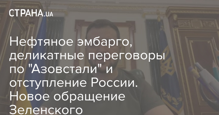 Нефтяное эмбарго, деликатные переговоры по "Азовстали" и отступление России. Новое обращение Зеленского