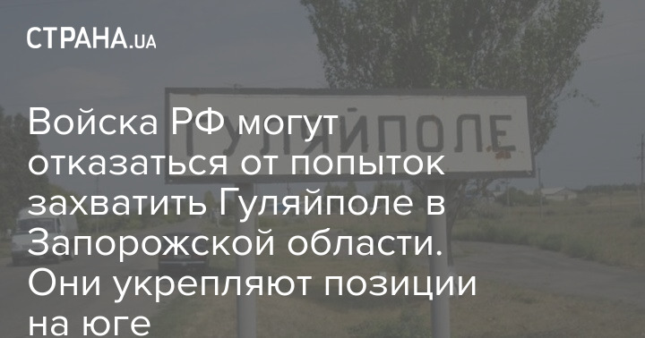Российские войска в Запорожской области могут отказаться от попыток захватить Гуляйполе и вместо этого занять оборонительные позиции.