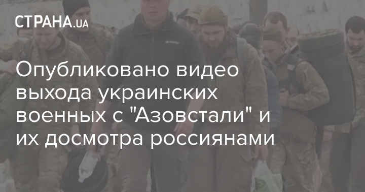 Опубликовано видео выхода украинских военных с "Азовстали" и их досмотра россиянами