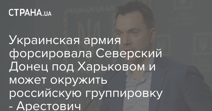 Советник главы Офиса президента Алексей Арестович заявил, что украинские войска на юге Харьковской области на днях форсировали Северский Донец и создали угрозу изюмской группировке противника.