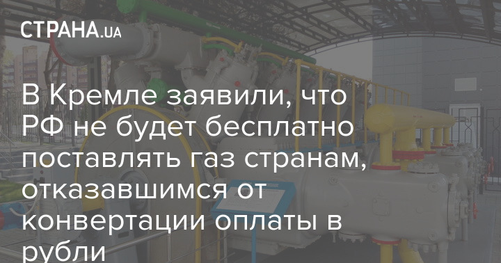 В Кремле заявили, что РФ не будет бесплатно поставлять газ странам, отказавшимся от конвертации оплаты в рубли