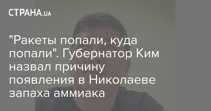 Губернатор Николаевской области Виталий Ким сообщил о ракетном ударе. И объяснил, почему в городе после этого появился запах аммиака.