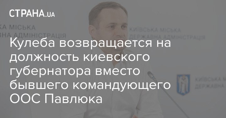 Кулеба возвращается на должность киевского губернатора вместо бывшего командующего ООС Павлюка