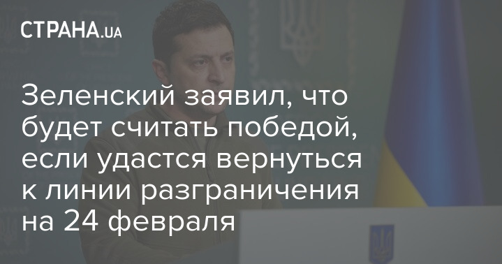 Президент Владимир Зеленский заявил, что будет считать победой, если Украине удастся вернуться к линии разграничения на 24 февраля.