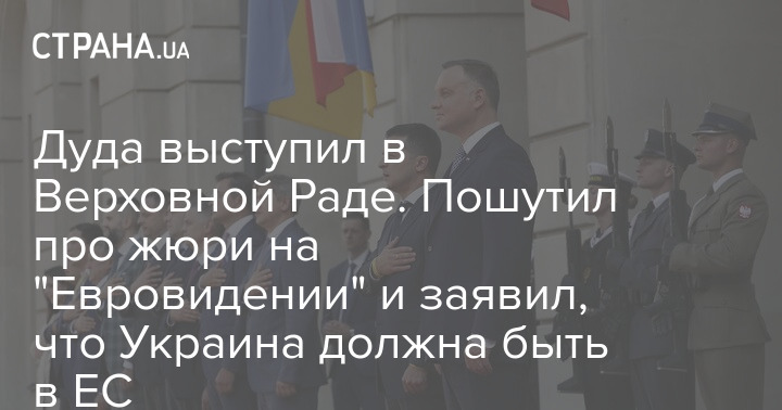 Президент Польши Анджей Дуда начал выступление в Верховной Раде Украины, обращаясь к украинскому парламенту и народу. Во время выступления он пошутил относительно небольшого скандала, когда украинское жюри не дало на Евровидение баллы польскому выступлению.
