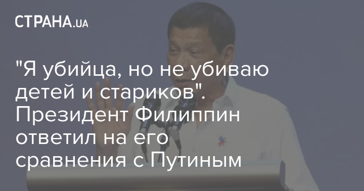 "Многие говорят, что мы с Путиным оба убийцы. Я давно говорил вам, филиппинцам, что я действительно убиваю. Но я убиваю преступников, я не убиваю детей и стариков", - сказал Дутерте.