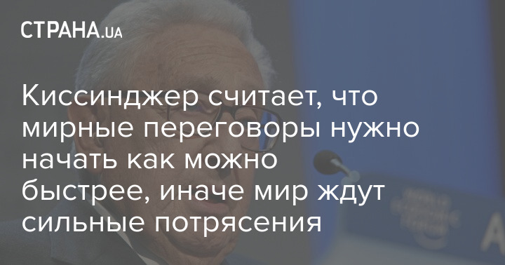 Бывший госсекретарь США Генри Киссинджер на Всемирном экономическом форуме в Давосе заявил, что мирные переговоры нужно начать как можно быстрее, иначе мир ждут сильные потрясения.