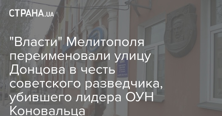 "Власти" Мелитополя переименовали улицу Донцова в честь советского разведчика, убившего лидера ОУН Коновальца