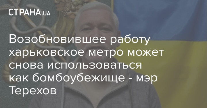 Возобновившее работу харьковское метро может снова использоваться как бомбоубежище - мэр Терехов