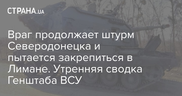 Враг продолжает штурм Северодонецка и пытается закрепиться в Лимане. Утренняя сводка Генштаба ВСУ