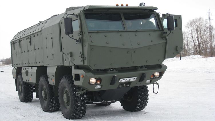 Силы специальных операций Вооруженных сил Украины разметили видео удара по российскому КамАЗу "Тайфун" (универсальный бронированный автомобиль повышенной защищенности).