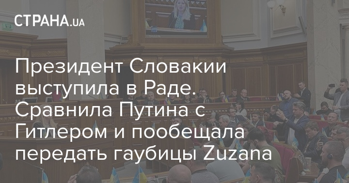 Президент Словакии выступила в Раде. Сравнила Путина с Гитлером и пообещала передать гаубицы Zuzana
