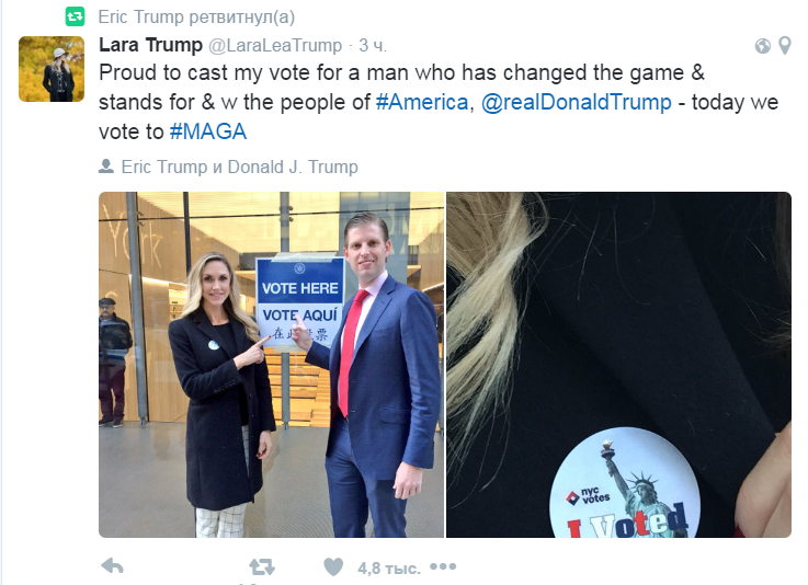 6. Еще одна причина, объясняющая победу Трампа. Явка для Хилари стала ключевой проблемой последних двух недель до выборов. Они очень большие ресурсы бросили на кампанию "Go out and vote!", с тем, чтобы привести своих избирателей. Во всех своих выступлениях сама кандидат - Хилари, Барак Обама, Мишель Обама призывали приходить на участки. Частично победа Трампа обеспечена и недоверием к Клинтон, как к бюрократу, связанному с крупнейшими правящими кланами. Кроме того, Клинтон слишком сильно уверовала в свою победу, а это для нее плохо. Избиратель проигрывающего кандидата всегда более мобилизирован. Логика проста: мы придём, проголосуем, а возможно и приведем кандидата к победе, тем более, что разрыв небольшой. Для избирателя выигрывающего кандидата даже очередь на избирательный участок могла стать фактором, почему он развернулся и ушел.