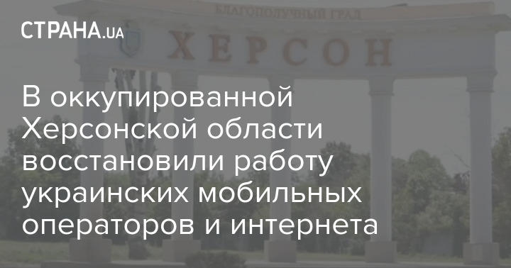 Россия с утра возобновила работу украинских операторов связи и интернета на территории Херсонской области, заявил советник председателя областной ВА Сергей Хлань во время телемарафона.